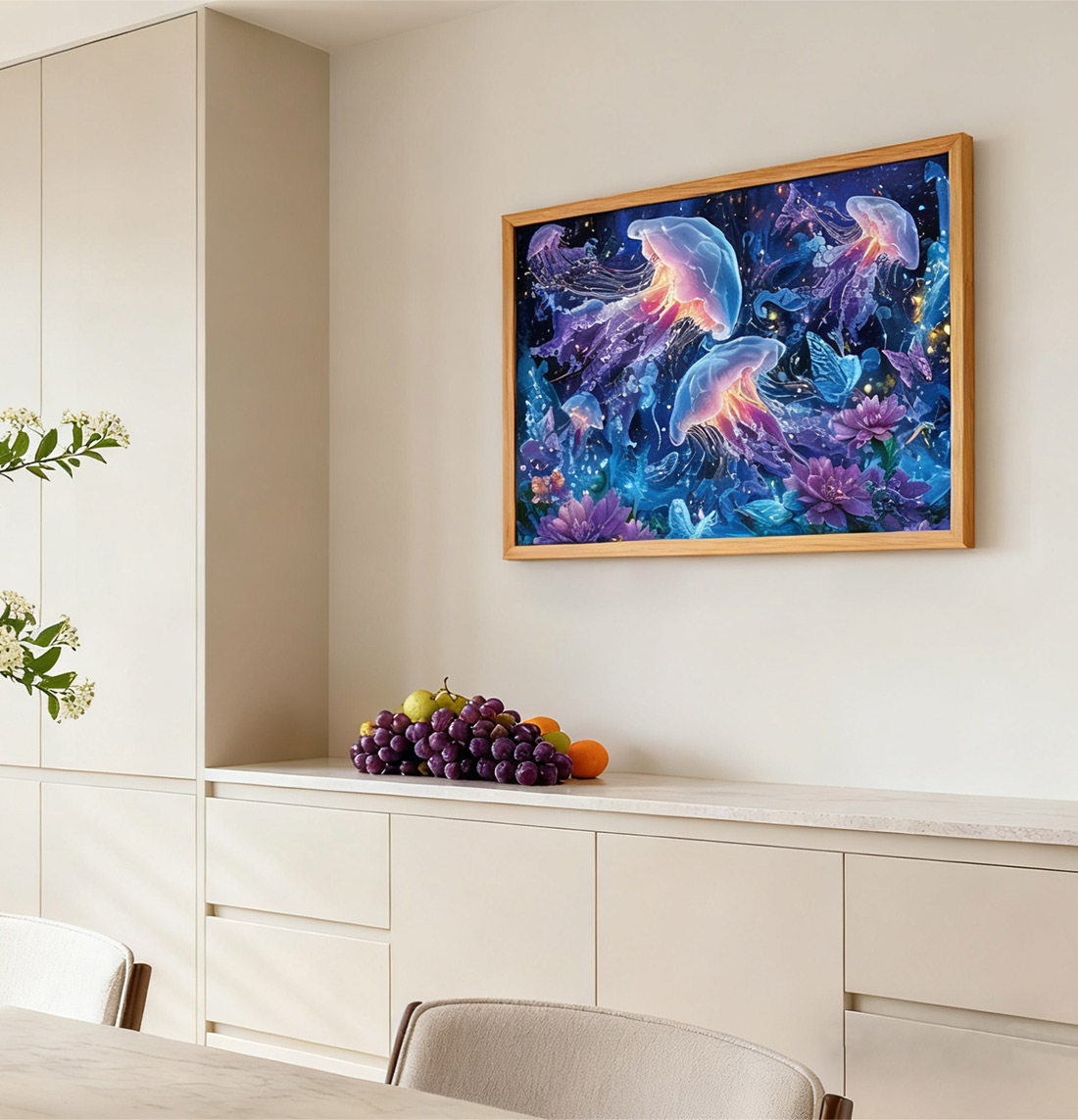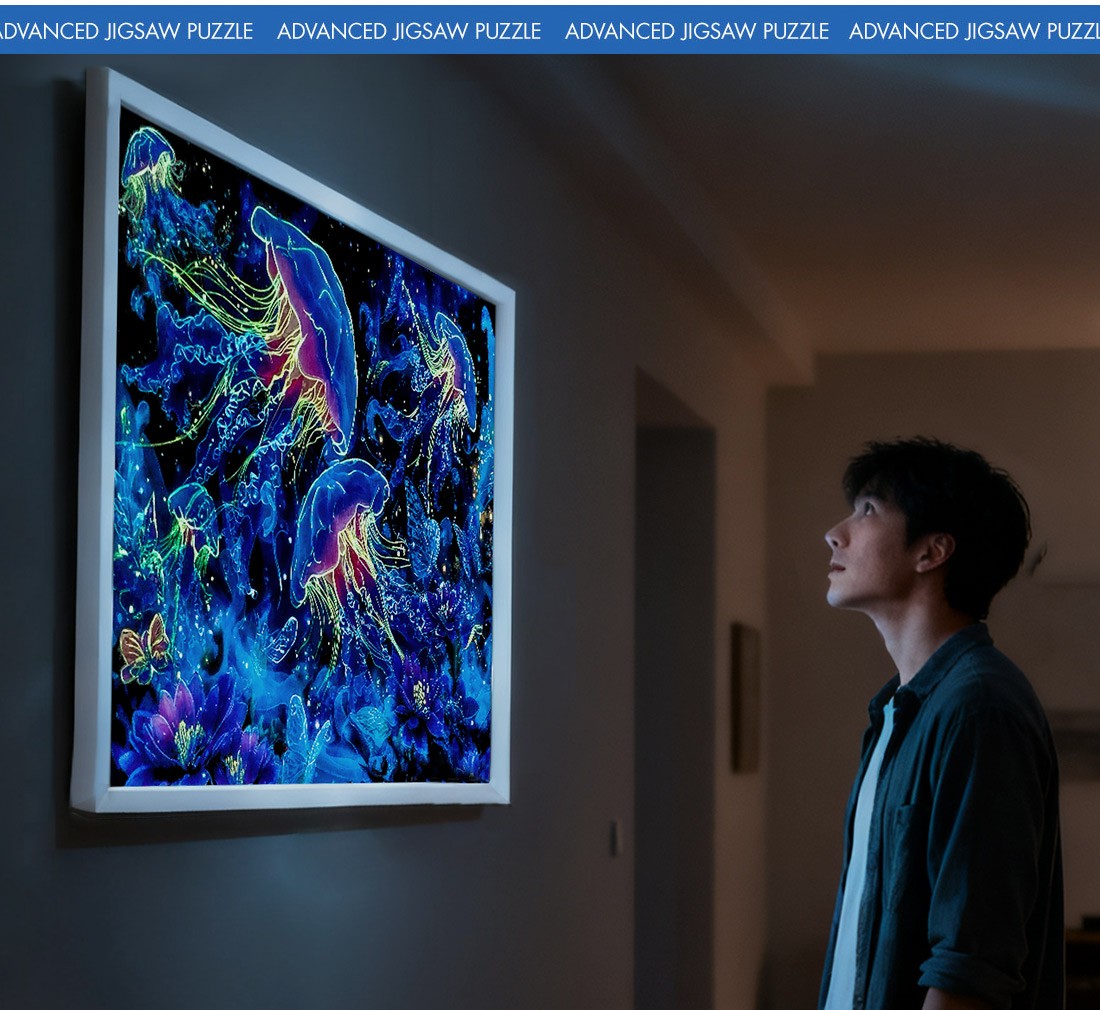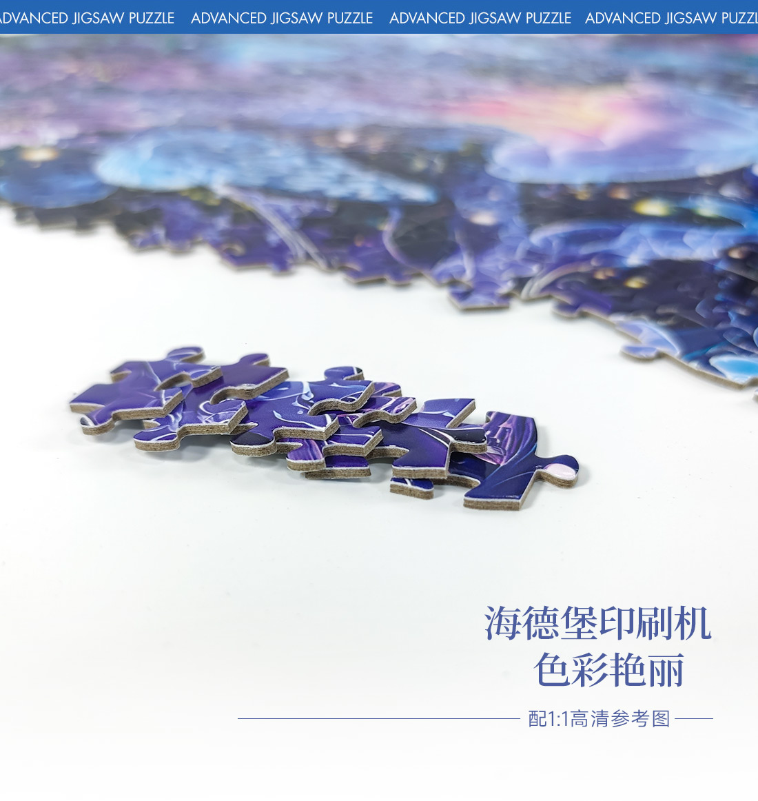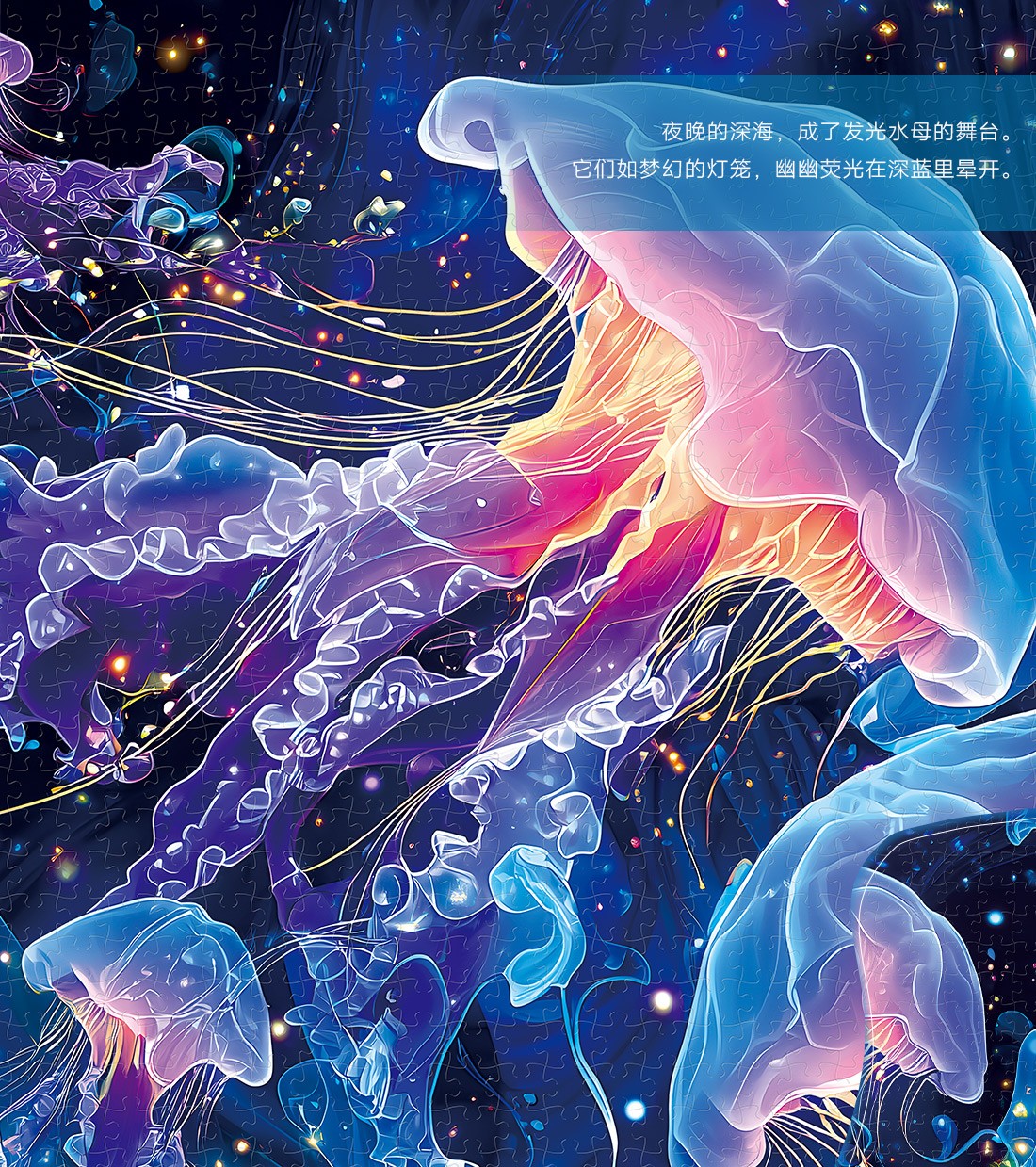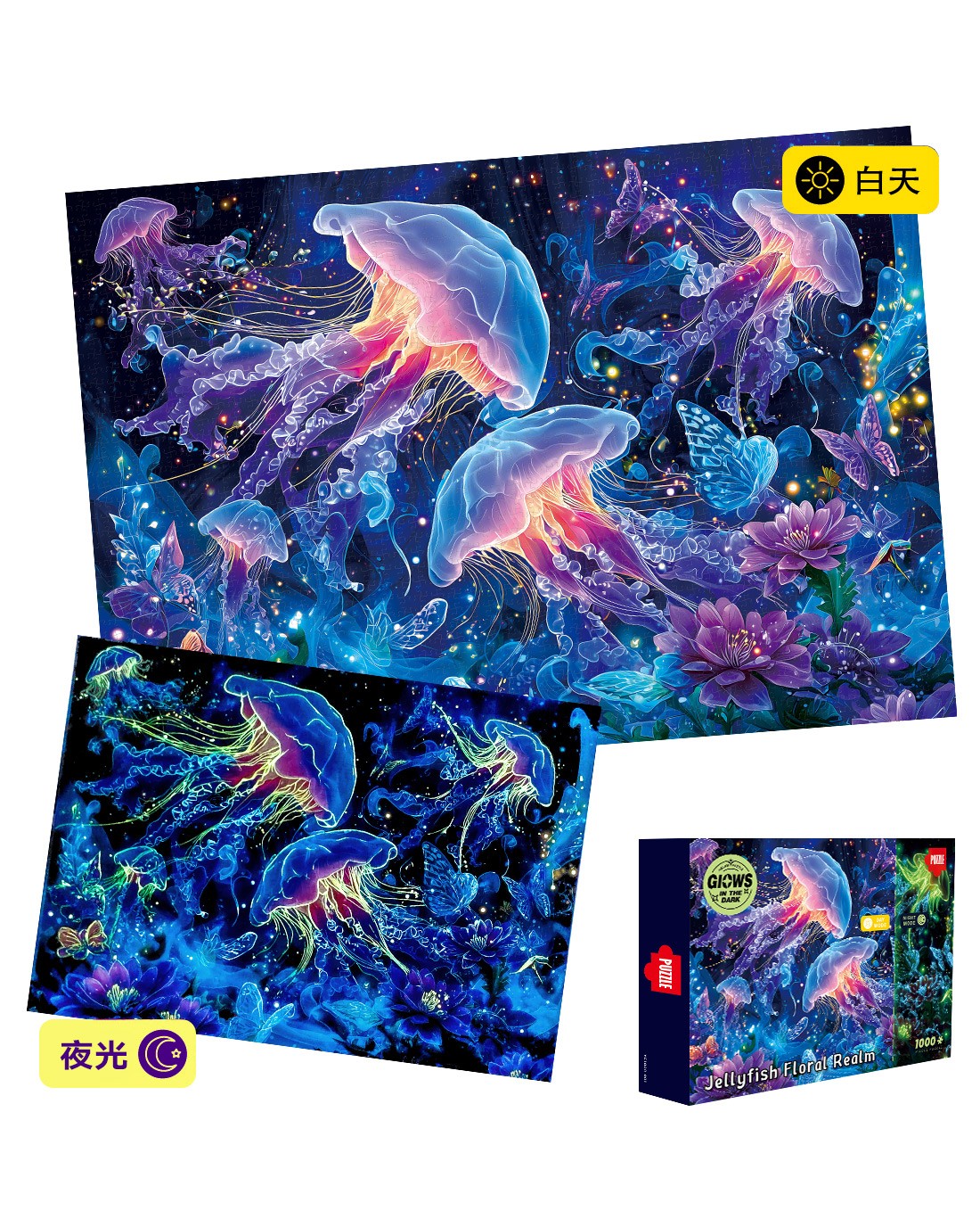 拼圖名稱:【幻海花境】夜光拼圖 拼圖尺寸:700*500MM 拼圖材質:紙質灰卡 拼圖片數:1000片 加工方式:廠規、來圖定制 包裝尺寸:180*130*50mm