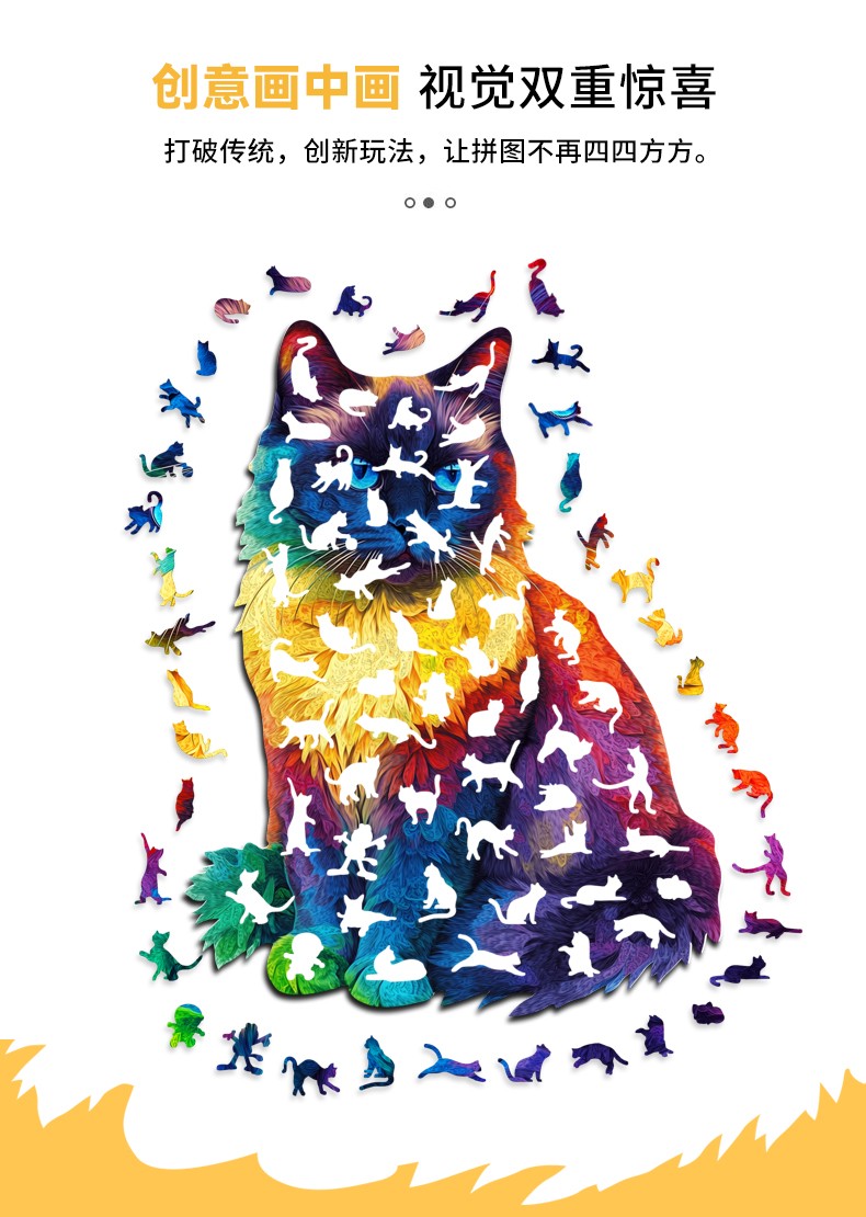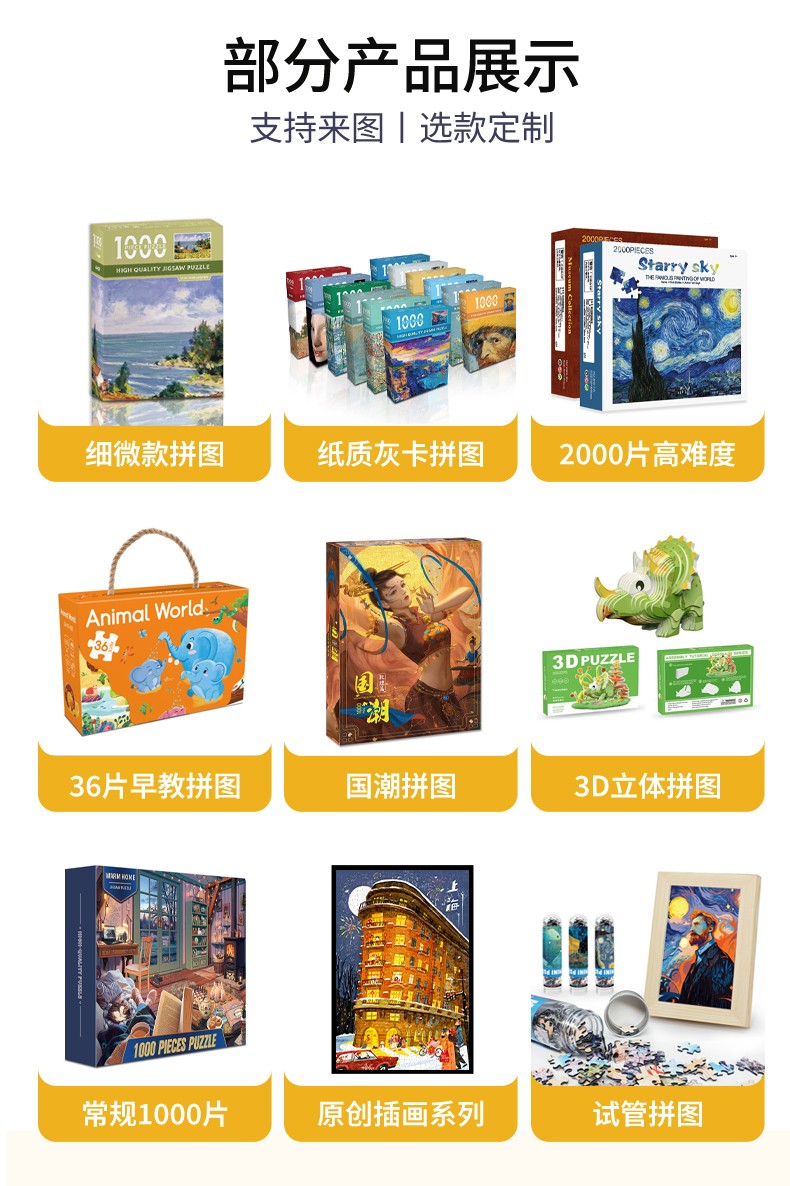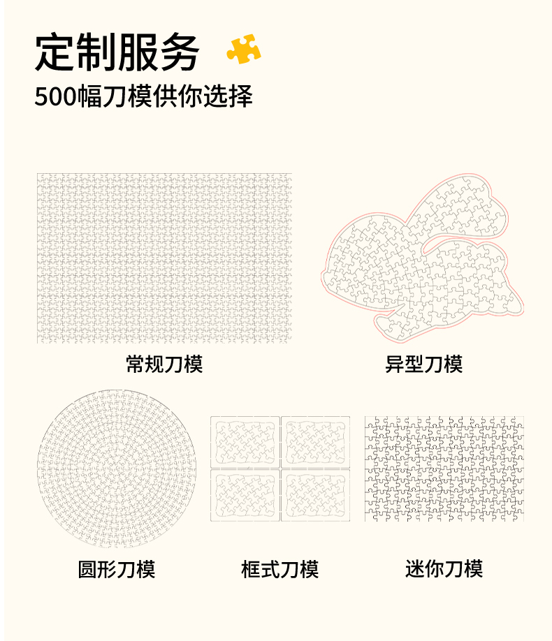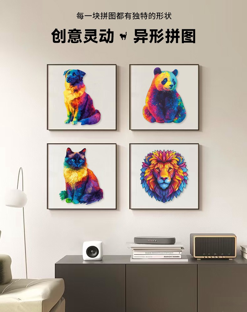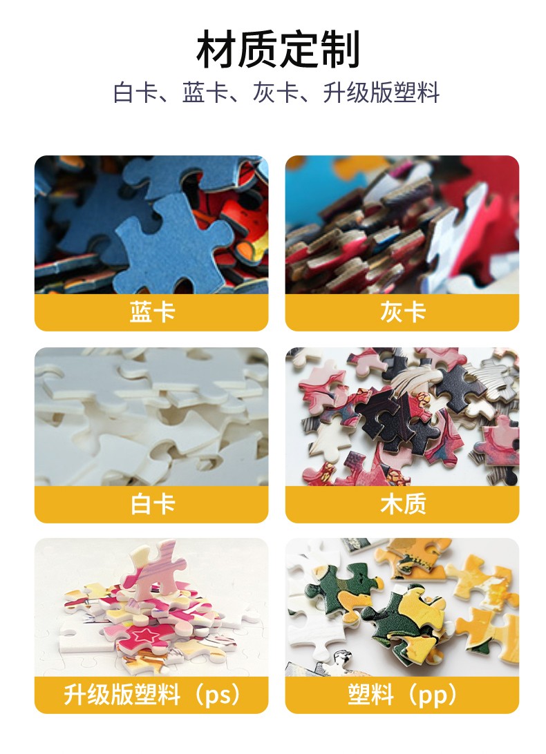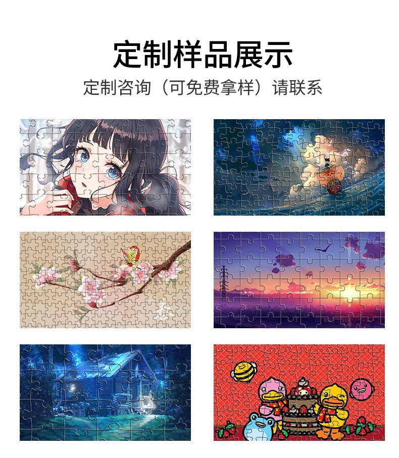 拼圖名稱:木制拼圖異形動物 拼圖尺寸:260*330*4.5MM 拼圖片數:201片 加工方式:廠規、來圖定制 包裝尺寸:220*160*45mm